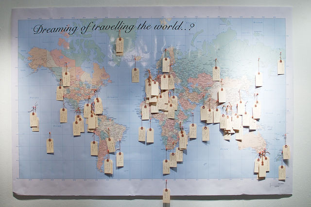 Sebuah impian terbangun untuk sebuah peta dunia ukuran besar yg akan tertempel di ruang keluarga, lengkap dgn film polariod yg telah tercetak dan ter-pinned di setiap tempat yg telah kami kunjungi berdua. Ditambah dengan mini bar dipojok rumah utk menyajikan Apple Cidar, Wine dan sedikit Liquors beraneka ragam. Bahkan sepasang traveler pria-wanita tua yg sering kami temui di airport jika kami traveling, menjadi salah satu alasan kenapa mimpi itu wajib hukumnya bagi saya.
