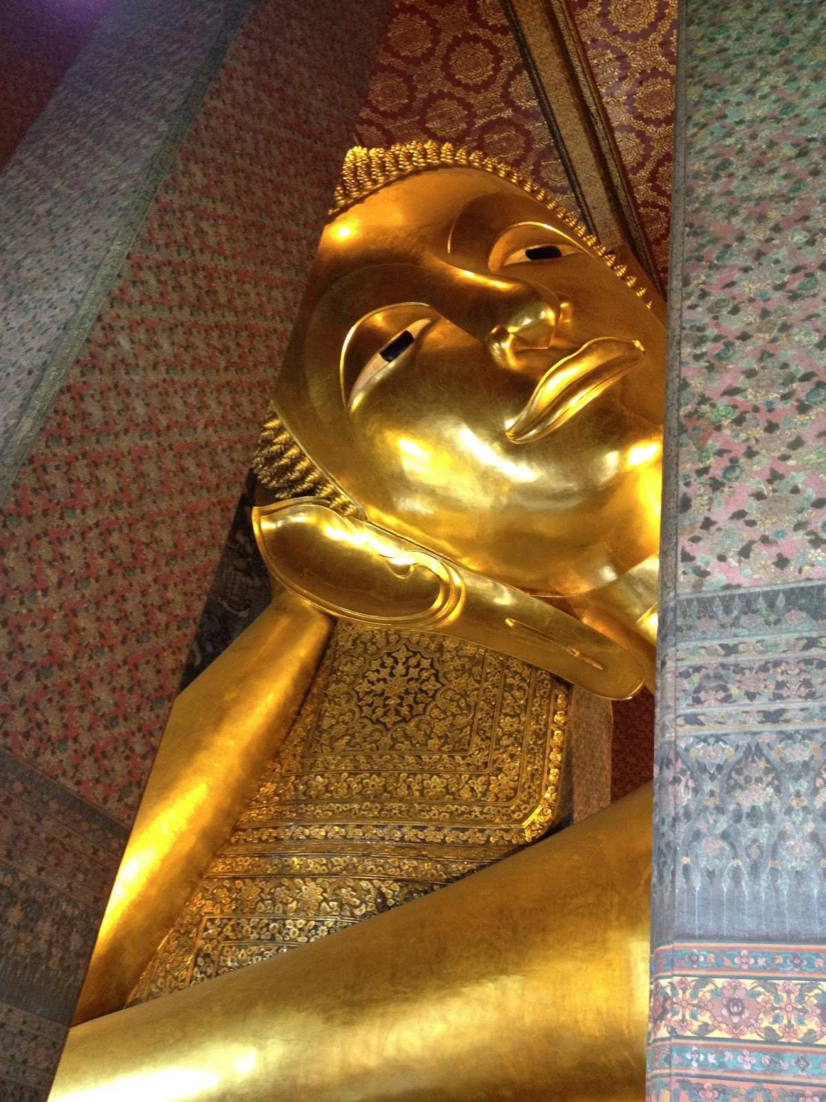 Nah yg seru dari backpacker trip itu adalah ketika kalian bisa tinggal gendong tas lari-larian ngejar BUS! Jadi hal ini terjadi pagi-pagi ketiga sesaat saya habis makan si fried chicken itu. Karena shelter bus di Thailand mirip2 di Indo yg gak jelas petunjuknya, jadi saya mencoba beradaptasi dgn berdiri siap siaga menunggu bus yg datang. Dengan bekal petunjuk dari guide setempat, saya harus naik bus 48 utk menuju Wat Pho, akhrinya saya pun kalem menunggu. Begitu si bus datang ternyata si bus cuma berhenti 3-5 detik hingga akhirnya dia jalan lagi, itu lah kenapa dibutuhkan fisik yg prima utk lari ngejar bus sambil gendong backpack.