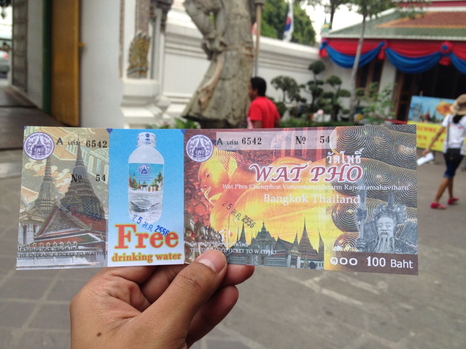 | Ticket to Wat Pho, 100 THB and free mineral water. |