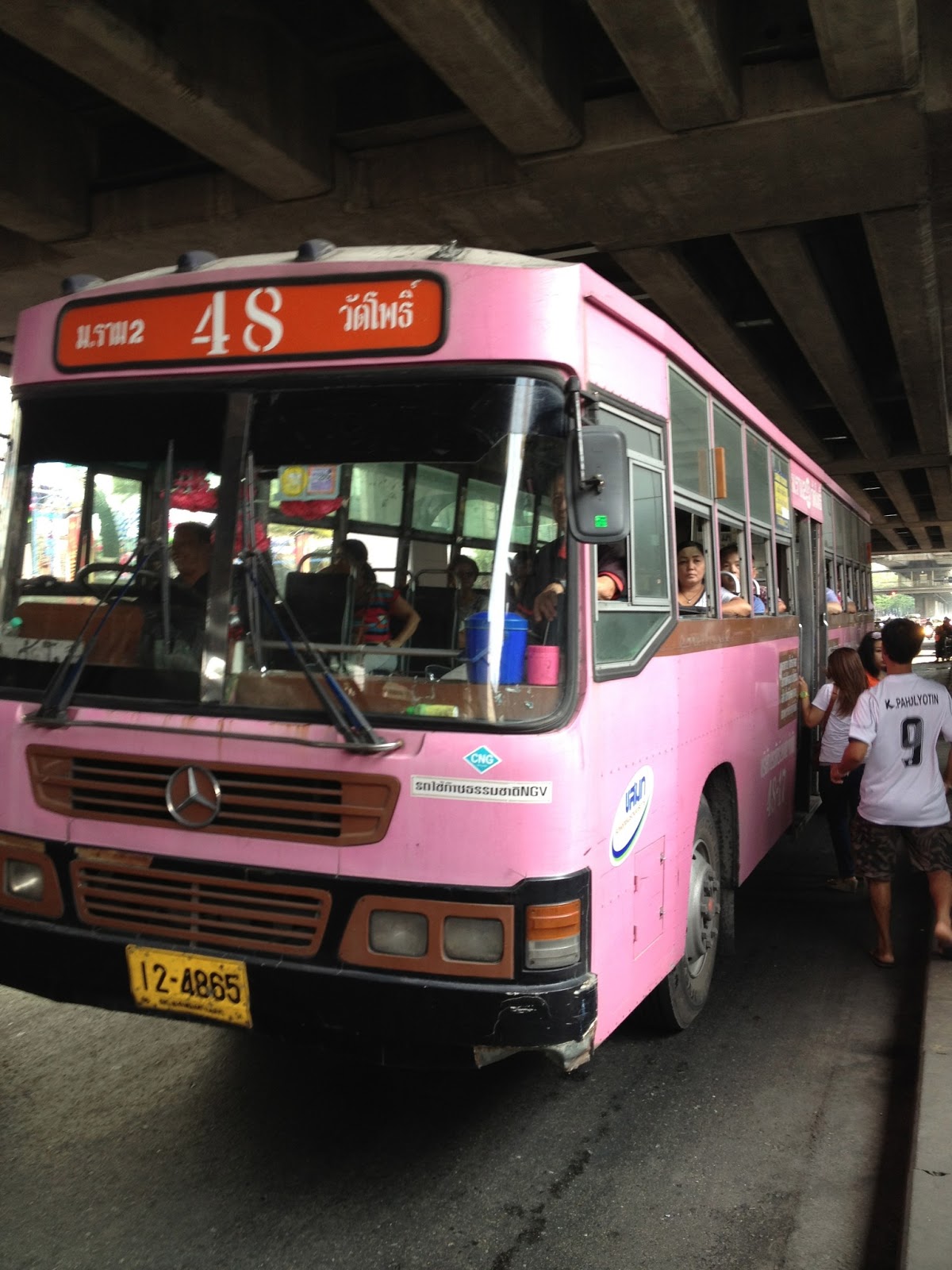 Nah yg seru dari backpacker trip itu adalah ketika kalian bisa tinggal gendong tas lari-larian ngejar BUS! Jadi hal ini terjadi pagi-pagi ketiga sesaat saya habis makan si fried chicken itu. Karena shelter bus di Thailand mirip2 di Indo yg gak jelas petunjuknya, jadi saya mencoba beradaptasi dgn berdiri siap siaga menunggu bus yg datang. Dengan bekal petunjuk dari guide setempat, saya harus naik bus 48 utk menuju Wat Pho, akhrinya saya pun kalem menunggu. Begitu si bus datang ternyata si bus cuma berhenti 3-5 detik hingga akhirnya dia jalan lagi, itu lah kenapa dibutuhkan fisik yg prima utk lari ngejar bus sambil gendong backpack.